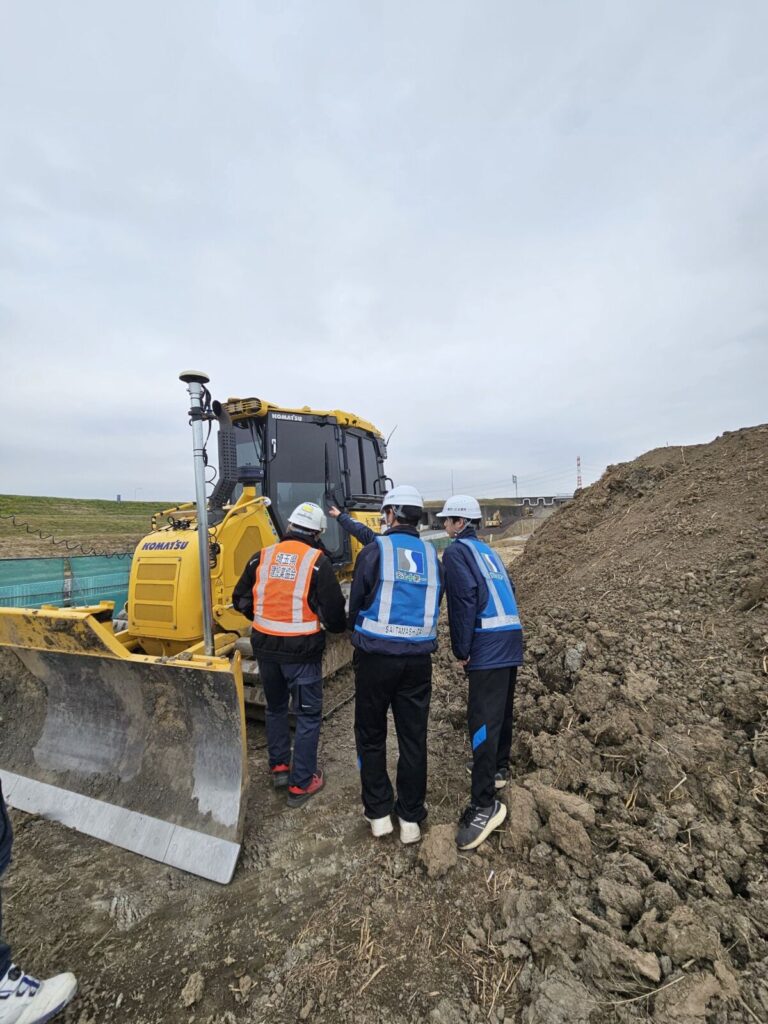 元請会社である金杉建設株式会社様のご協力のもと、現場の説明や重機に触れる体験を行いながら