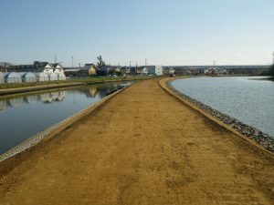 9037河川改修工事(堤防修繕工) 2020年3月26日 発注者 埼玉県 請負区分 元請工事 工事場所 埼玉県三郷市鷹野地内ほか 工期 自令和元年9月18日~至令和2年3月19日 工事内容 河川土工 L=110m 法面護岸工 張芝工 190㎡ 捨石工 44㎥ ブロックマット工 154㎡ 仮設工 1式